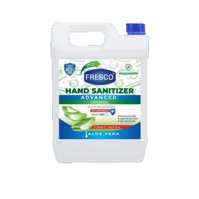 micro-organisms on the skin, reducing cross contamination and helping prevent the spread of disease. Unlike traditional gels, Fresco Hand Sanitizer dries quickly and leaves a non-sticky feel.A unique combination of natural moisturizing ingredients help retain your skin’s moisture. The moisturizing formula helps keep skin healthy and intact reducing the potential for transmission of germs person to person. This Hand Sanitizer 5-Liter can to provide bulk qty for easy to use for dispenser.