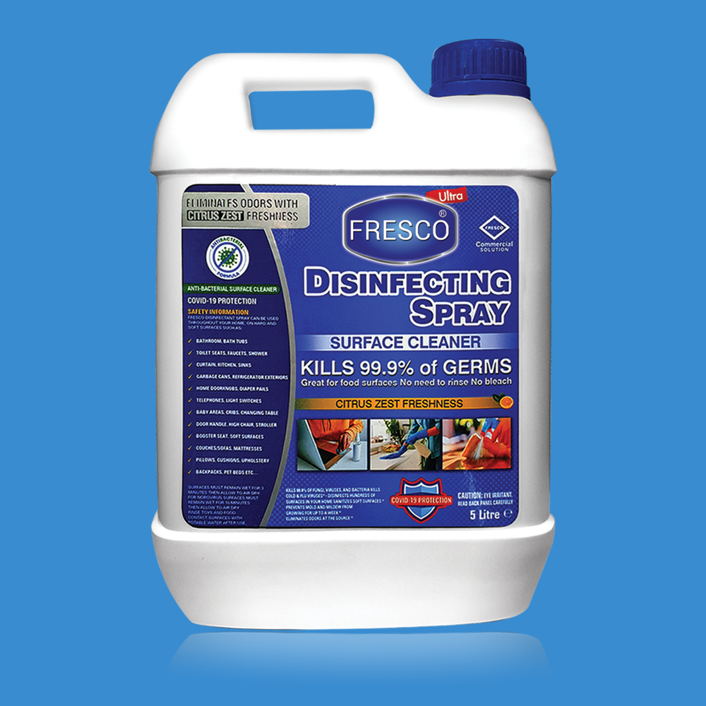 Fresco Disinfectant Sprays kill 99.9% of the viruses and bacteria your family comes in contact with every day. Our disinfectants can be used to eliminate germs on commonly touched hard and soft surfaces. Fresco Disinfectant Spray is proven to kill 99.9% of germs, viruses and bacteria. FRESCO Disinfectant Spray can help protect your family from germs by helping prevent the spread of harmful bacteria and viruses.Fresco’s unique formula is proven to kill 99.9% of bacteria and viruses, including the flu virus, on surfaces that you come into contact with every day, such as door handles, kitchen bins and toilet areas. Deodorized by killing germs that cause odors Controls mold and mildew on mattresses, pillows and shower gives fresh fragrance.